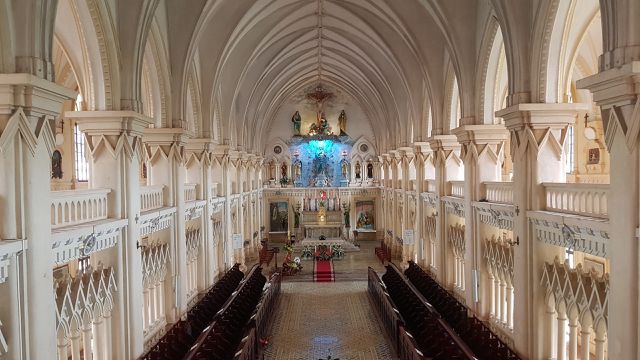 Các ô của chính, cửa sổ của thánh đường đều được thiết kế theo kiểu mái vòm, con vút, nhọn hoắt cùng thiết kế kiến trúc không gian bên trong tinh tế, cầu kỳ.
