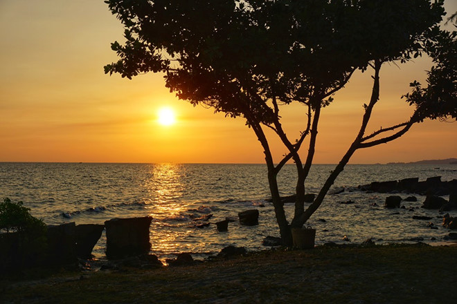 Chiều đến, khi những vệt nắng cuối cùng vụt tắt, thời khắc hoàng hôn ấy thật huy hoàng, rực rỡ để lại một cảnh đẹp ấn tượng không khác gì Maldives hay những bãi biển nổi tiếng ở Phillipines.