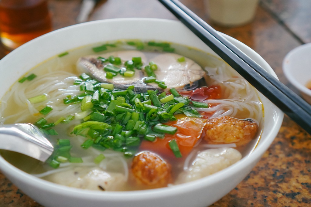 Du khách có thể thưởng thức các món bín chả cá, cá thu, bún rạm… với nguyên liệu tươi ngon từ biển. Món ăn mang đậm hương vị miền Trung, cay, mặn vừa đủ, kích thích vị giác. Ăn kèm rau sống thật tuyệt vời.