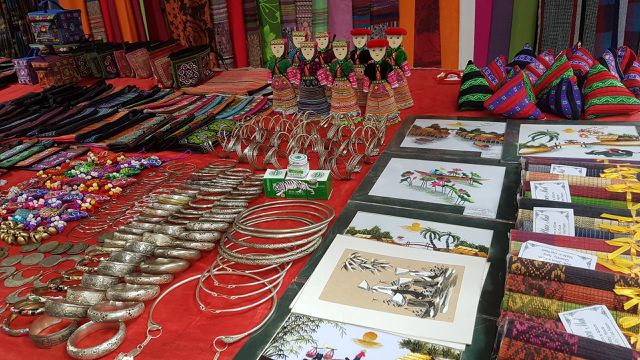 Nhiều món hàng phụ vụ khách du lịch được bày bán chuyên nghiệp, ngăn nắp.