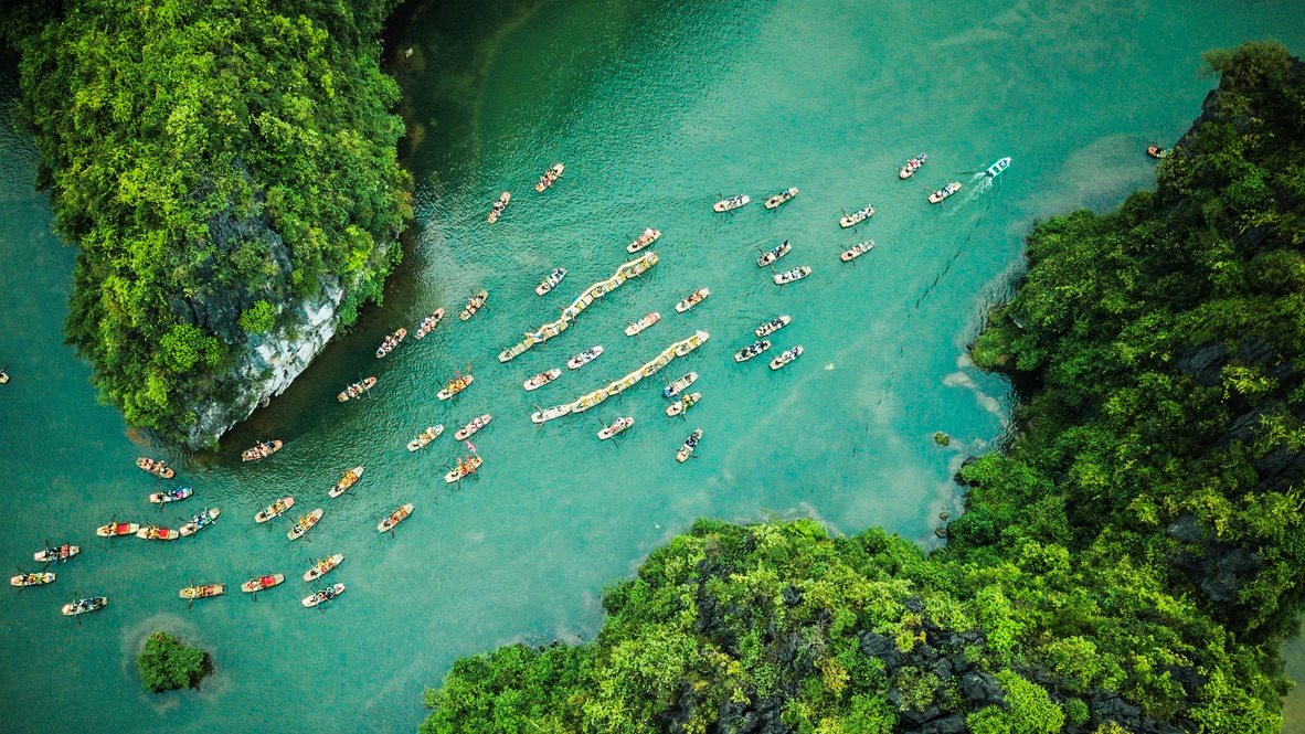 Góc nhìn từ trên cao sẽ cho du khách trải nghiệm tuyệt vời, xứng đáng danh hiệu di sản thiên nhiên thế giới của Tràng An.