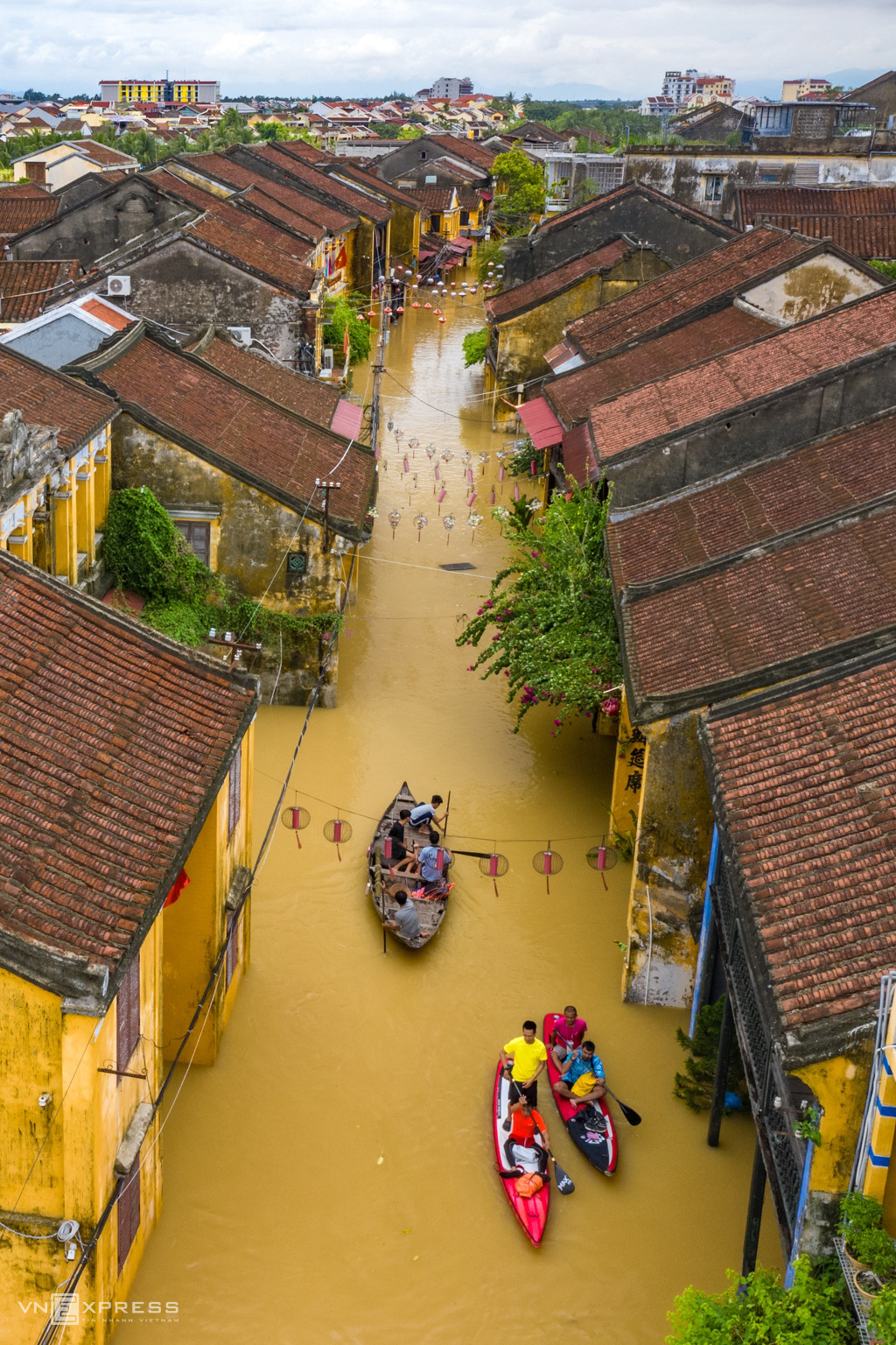Phố Hội vừa trải qua đợt nước lũ dâng cao. Hình ảnh này được ghi lại trong bộ ảnh “Chèo ghe khám phá phố cổ mùa nước lũ” của hai nhiếp ảnh gia Phan Vũ Trọng và Đỗ Anh Vũ, đều sống và làm việc tại Hội An. Đã tạo nên một bức tranh cảnh quan về nhịp sống nơi đây mùa lũ về.