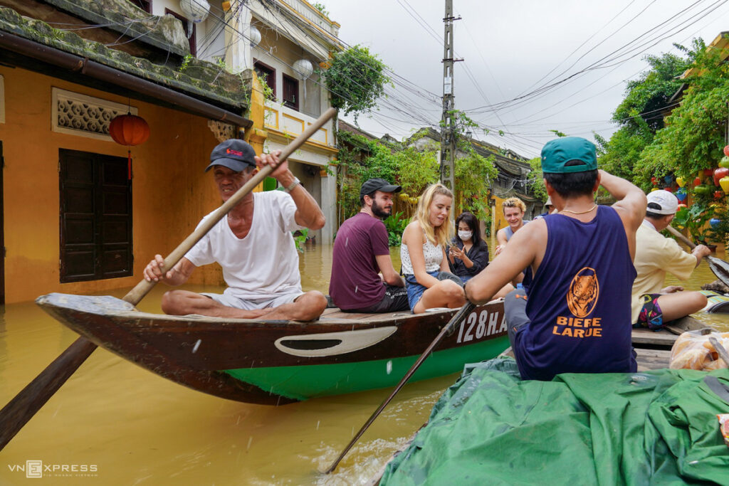 Hội An mùa mưa lũ, ghe là phương tiện di chuyển chủ yếu của người dân và trở thành trải nghiệm thú vị cho du khách.