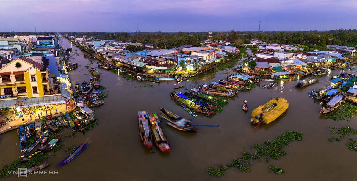 Hành trình khám phá miền Tây, chàng nhiếp ảnh ghé chợ nổi Ngã Năm, Sóc Trăng và lưu lại khoảnh khắc khung cảnh của ghe thuyền nhộn nhịp mua bán thực phẩm, hàng hóa trên sông. Khu Chợ Nổi được nhiều du khách ghé tham quan, thường hợp từ 4-5h sáng và đông nhất lúc 6-7h.