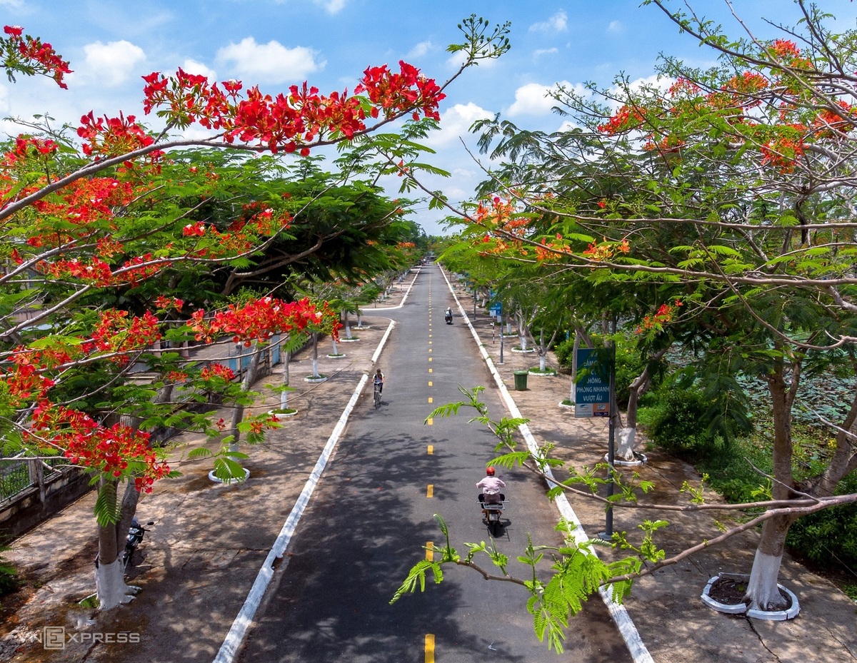 Đến Hậu Giang mùa phượng nở, khoảnh khắc lưu lại chính là những tán phượng nở rực hai bên đường huyện Vị Thủy.