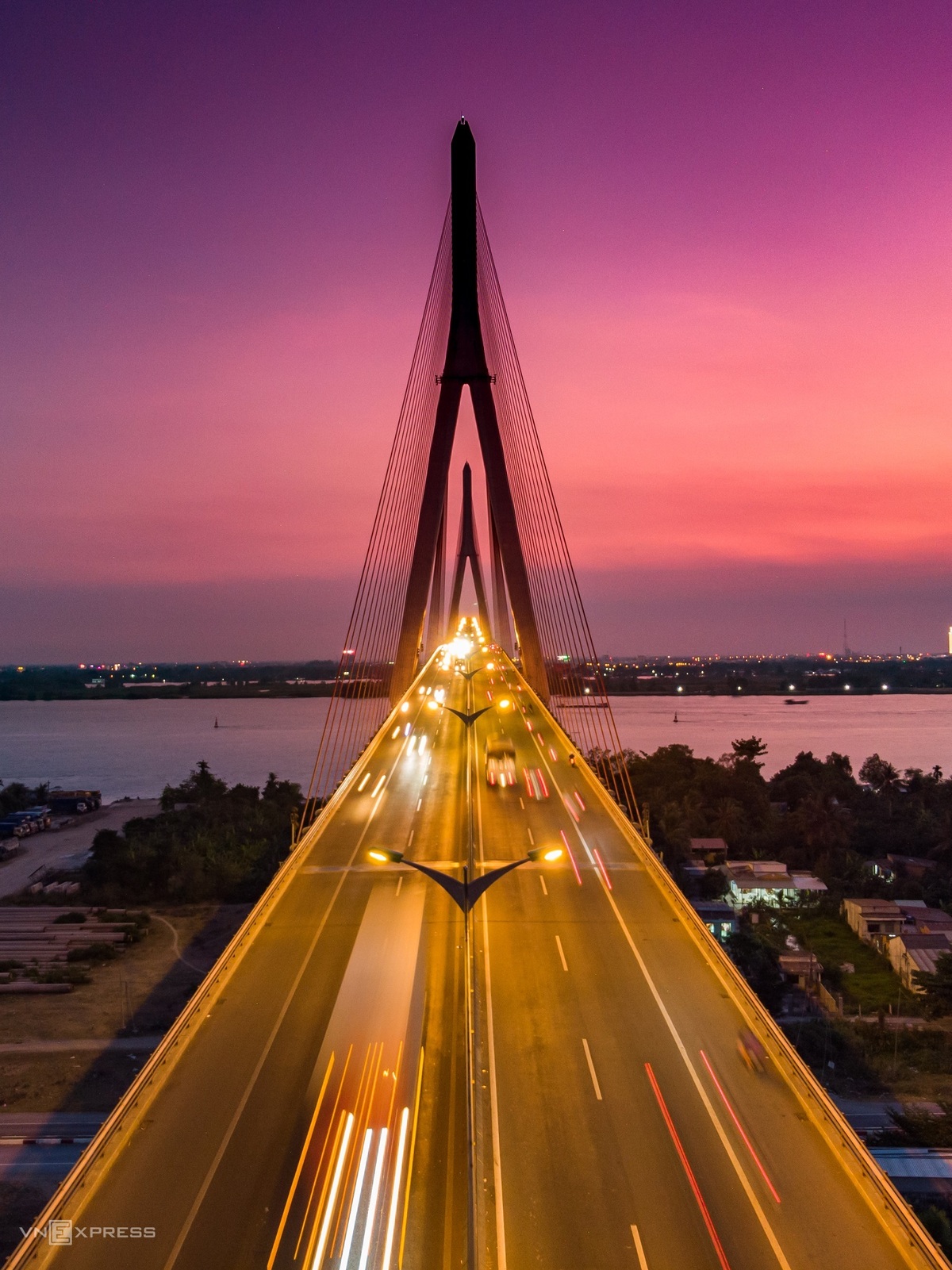 Mảnh đất Tây Đô từ trên cao thật ấn tượng. Hoàng hôn trên cầu Cần Thơ, một biểu tượng của mảnh đất Tây Đô. Cây cầu bác ngang sông Hậu nối Cần Thơ và Vĩnh Long.