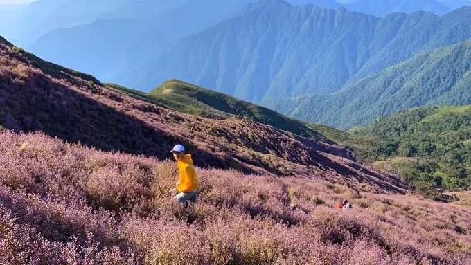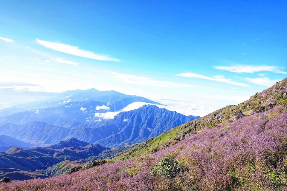 Cuối thu, đường lên Tà Chì Nhù phủ đầy sắc hoa chi pâu tím.