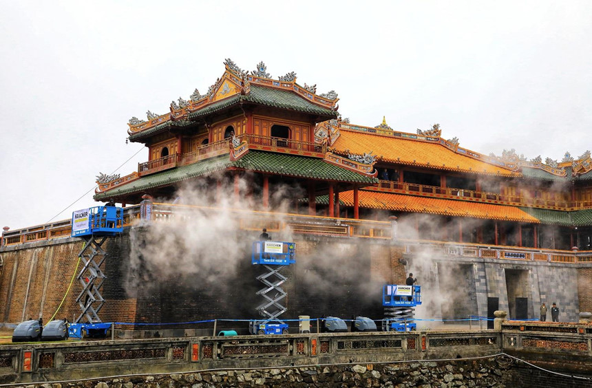 Nét rêu phong cổ kính, trầm mặc làm nên nét Huế. Tuy nhiên theo thời gian, những di tích ấy cũng cần được làm sạch rêu phong nhằm bảo tồn và gìn giữ cùng năm tháng. Ngọ Môn (Đại Nội Huế) trải qua 1 tháng làm sạch với công nghệ phun rửa của Đức đã khoác lên mình “màu áo mới” khác lạ.