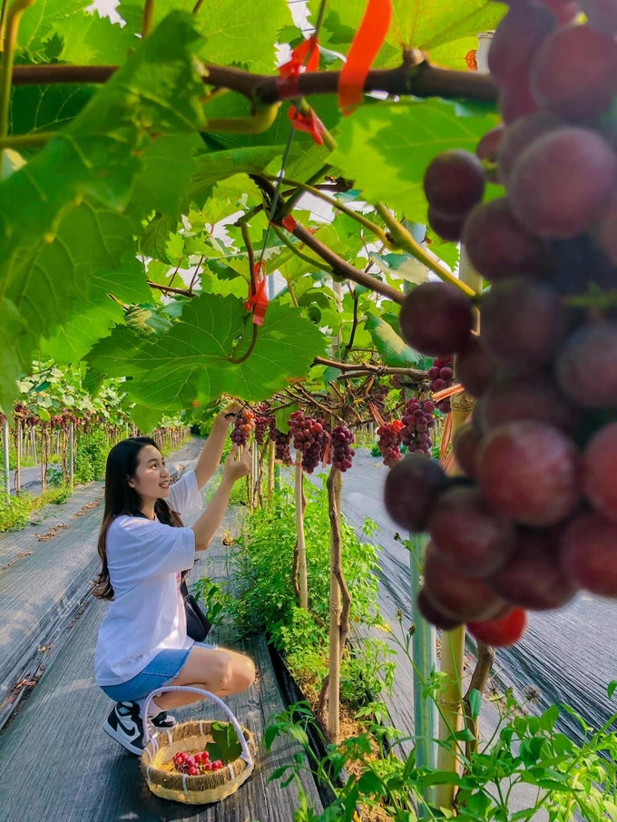 Nằm trong trang trại Chimi Farm trên địa bàn xã Vĩnh Ngọc, Đông Anh. Vào thời điểm tháng 6-7 nho chín rộ vào mùa thu hoạch. Những luống nho sai trĩu quả, màu tím đỏ mọng hút du khách tới chụp ảnh và hái nho. Những trái nho không quá to nhưng ngọt mọng và không hạt. Du khách không mất vé tham quan, mua nho tại vườn giá 200.000đ/kg.