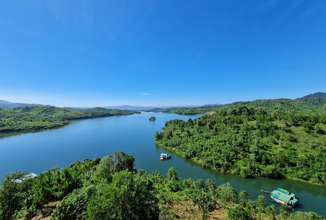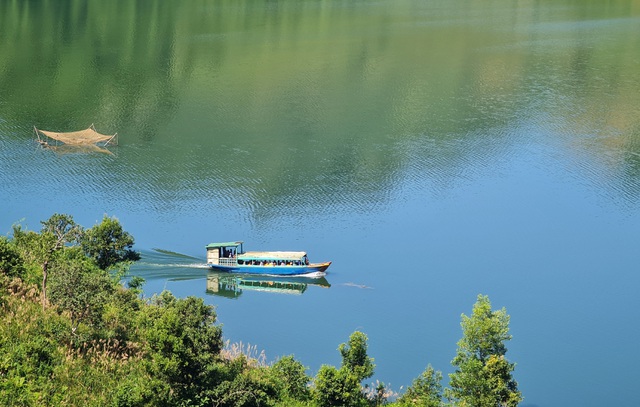 Những chiếc thuyền rẽ nước trên mặt hồ phẳng lặng đưa du khách vào không gian kỳ vỹ hoang sơ của hồ thủy điện lớn nhất Tây Nguyên.
