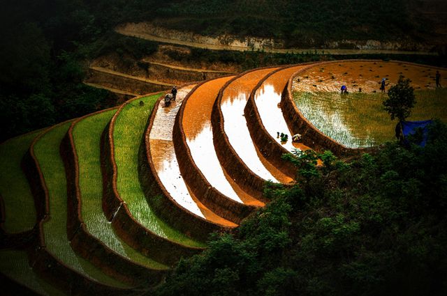 Qua ống kính của nghệ sỹ trẻ, những thửa ruộng bậc thang Mù Cang Chải mùa nước đổ hiện ra lung linh, huyền ảo tựa như một bức tranh nghệ thuật sắc màu đầy hơi thở cuộc sống.