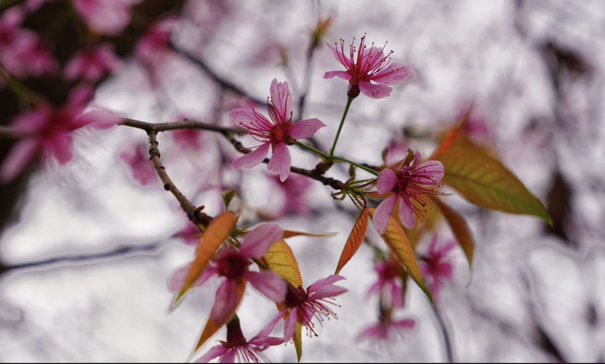 Những ngày Tết đang về, hoa tớ dày đang bung nở sắc hồng rực rỡ làm bừng lên sức sống cho không gian mùa đông tĩnh lặng nơi vùng núi Mù Cang Chải.