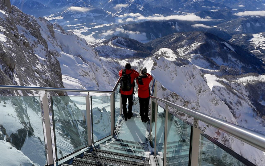 Cầu kính Dachstein (Salzburg, Áo): Với độ cao so với mặt đất lên đến 2.700m trên dãy núi Alps hùng vĩ, cây cầu kính này thực sự là một trải nghiệm dành cho những người gan dạ đỉnh cao. Đặc biệt thiết kế cây cầu có một nấc thang kính mang tên “Nấc thang đến sự hư vô” – tạo cho du khách như lạc vào chốn thần tiên nơi vùng núi Dachstein.