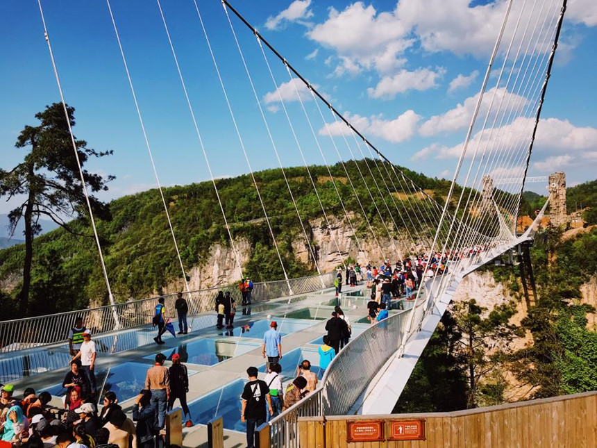Cầu kính Trương Gia GiớiCầu kính Trương Gia Giới (Trung Quốc): Giữa vô số các cây cầu kính mọc lên ở Trung Quốc, cầu kính Trương Gia Giới vẫn trường tồn bất diệt. Với chiều dài 430m và rộng 6m, ghép từ 99 tấm kính, cây cầu luôn thu hút tấp nập du khách đến trải nghiệm, không ít người đã chờ qua đêm để tận hưởng cảm giác bước trên cây cầu kính trng suốt giữa mênh mang không gian hùng vỹ của núi non, mây trời.