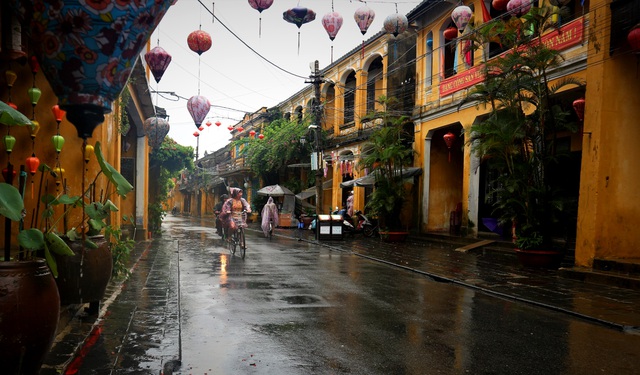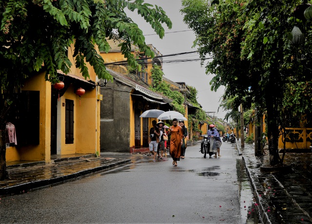 Ngày mưa, phố Hội sẽ đượm vẻ buồn hơn nhưng nét buồn đó trong veo, thi vị. Vạn vật như đắm mình trầm mặc hơn dưới mưa khiến lòng người cũng như lắng lại, “sống chậm”, tĩnh tại hơn.