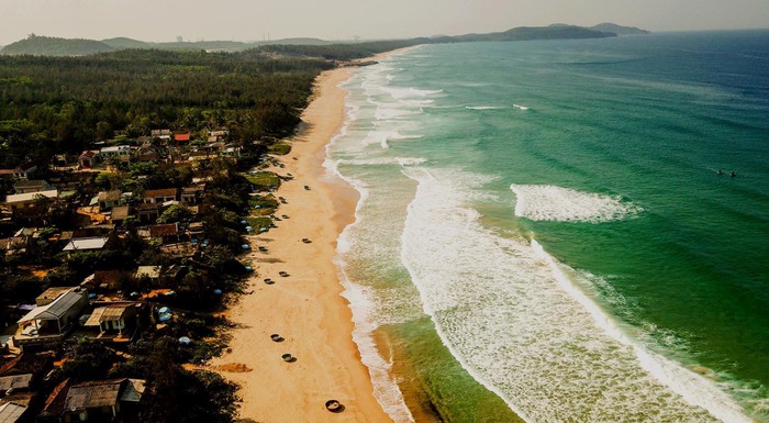 Với chiều dài hơn 1km, vào những ngày hè, du khách đến đây được hòa mình vào thiên nhiên xanh mát với làn nước trong veo, từng đợt, từng đợt tung bọt trắng xóa vỗ bờ, tạo nên một bức tranh thủy mặc tuyệt mỹ.
