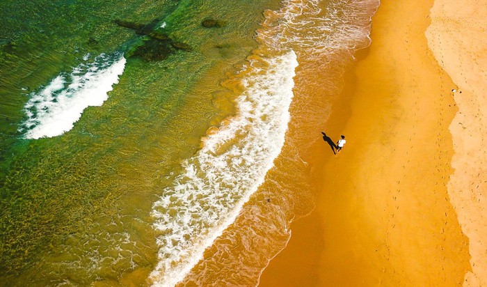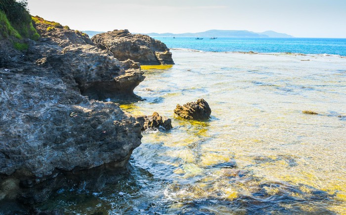 Giữa rất nhiều biển miền Trung nổi lên một eo biển mộng mơ, trữ tình với bãi cát vàng trải dài thoai thoải cùng làn nước xanh trong bên những vách đá trầm tích từ núi lửa hàng triệu năm qua… Đó là tuyệt tác biển Lệ Thủy nằm ở huyện Bình Sơn, Quảng Ngãi.