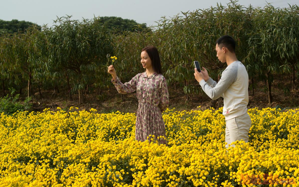 Những cành đồng cúc chi vàng rực bắt mắt đang vào mục thu hoạch.