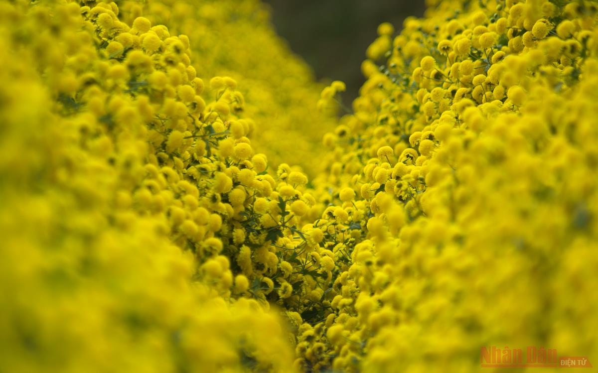 Những luống hoa thẳng tắp nằm san sát nhau tạo nên những thảm hoa vàng rực ngút tầm mắt.