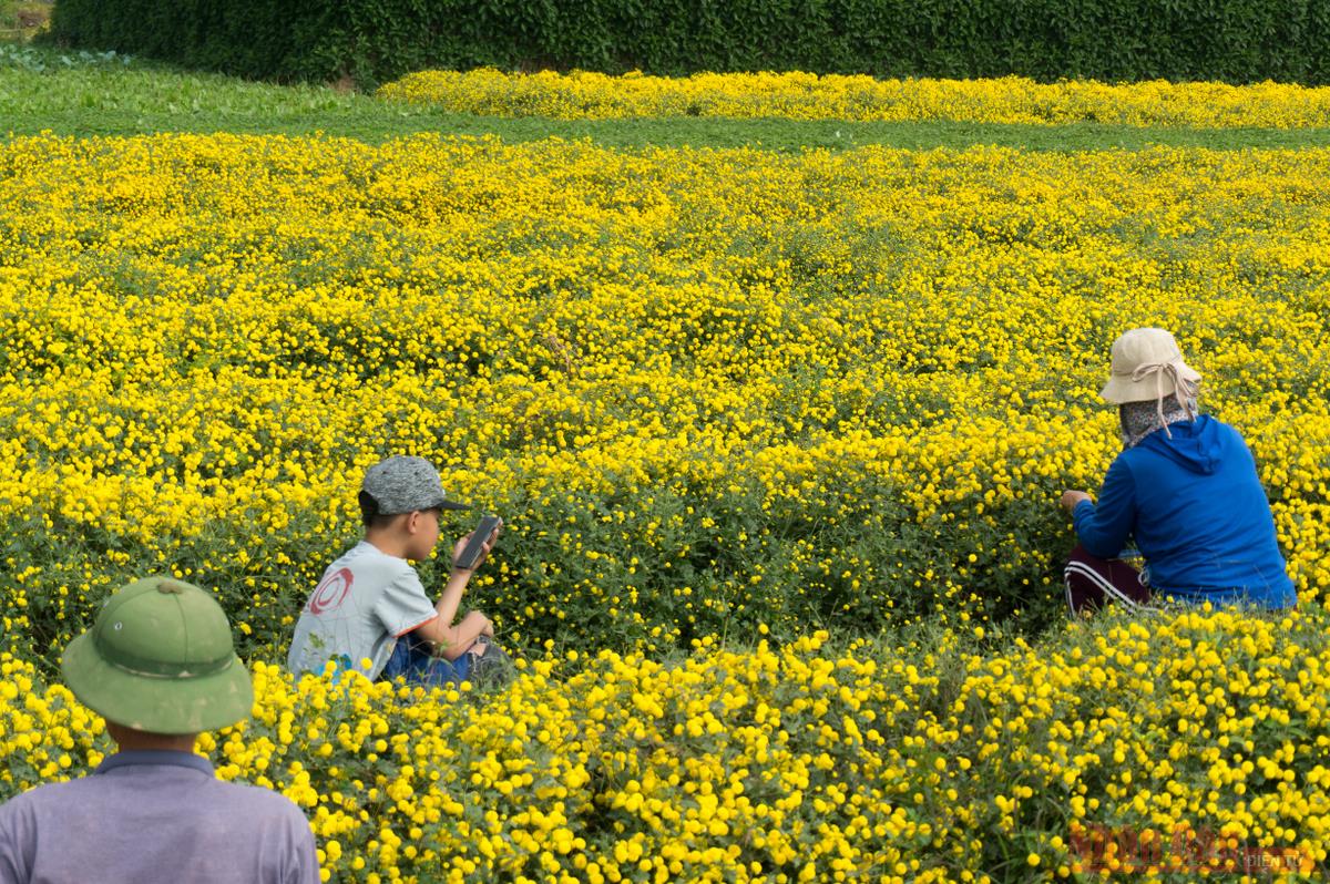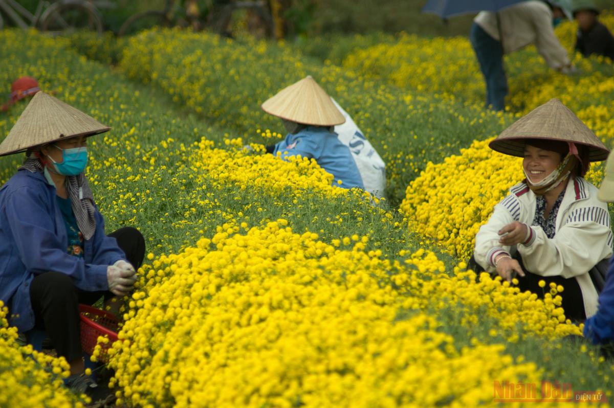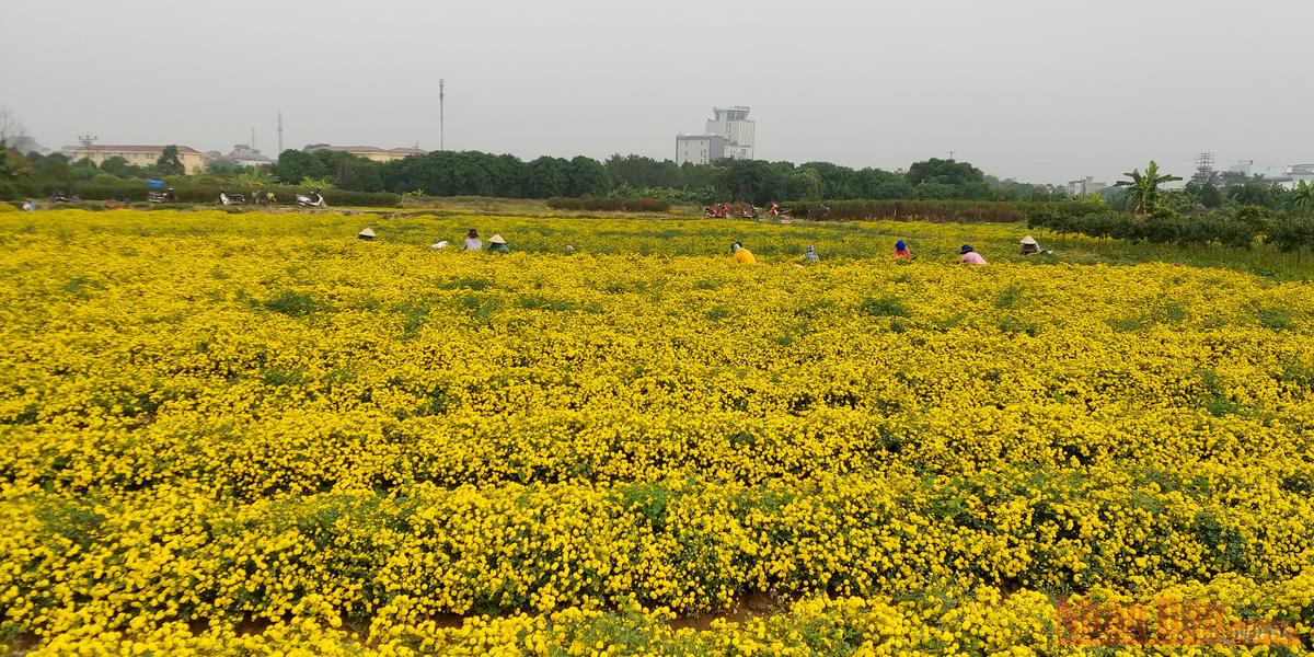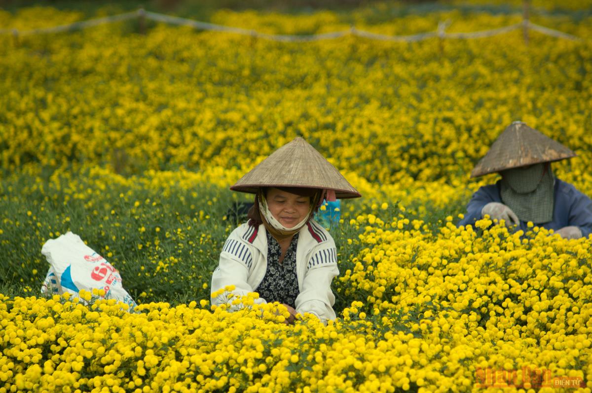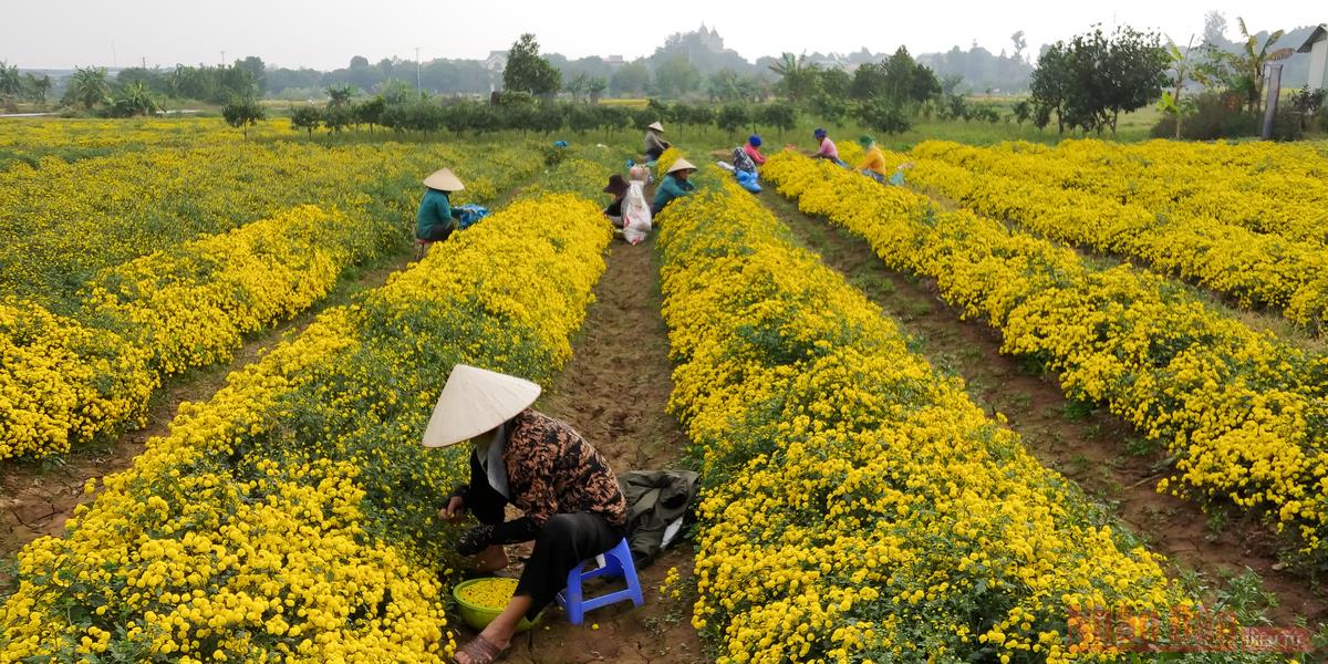 Chính vụ, trên khắp cánh đồng rộn rã tiếng cười nói của các bà, các chị vào vụ thu hoạch. Người dân địa địa phương cho biết thu hoạch cúc chi dịp bung nở độ đẹp nhất khi chưa kịp tàn là tốt nhất.