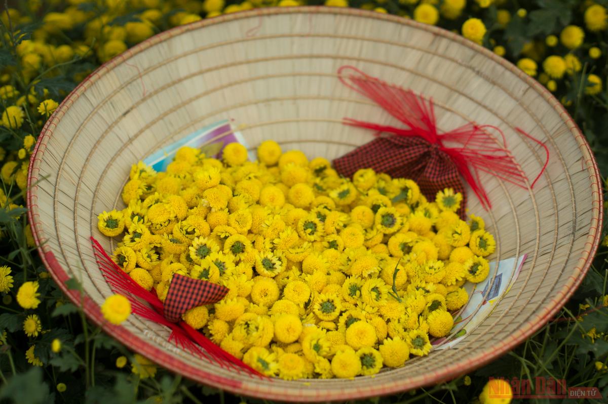 Mỗi sào hoa ước thu được chừng 450kg hoa tươi, cần 5-7kg hoa tươi mới được thành phẩm 1kg hoa khô.
