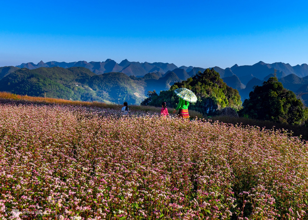 Loài hoa tam giác mạch tại Lũng Táo, Đồng Văn thời điểm tháng 11 khi đồng hoa nở rộ rộng 5.000ha.