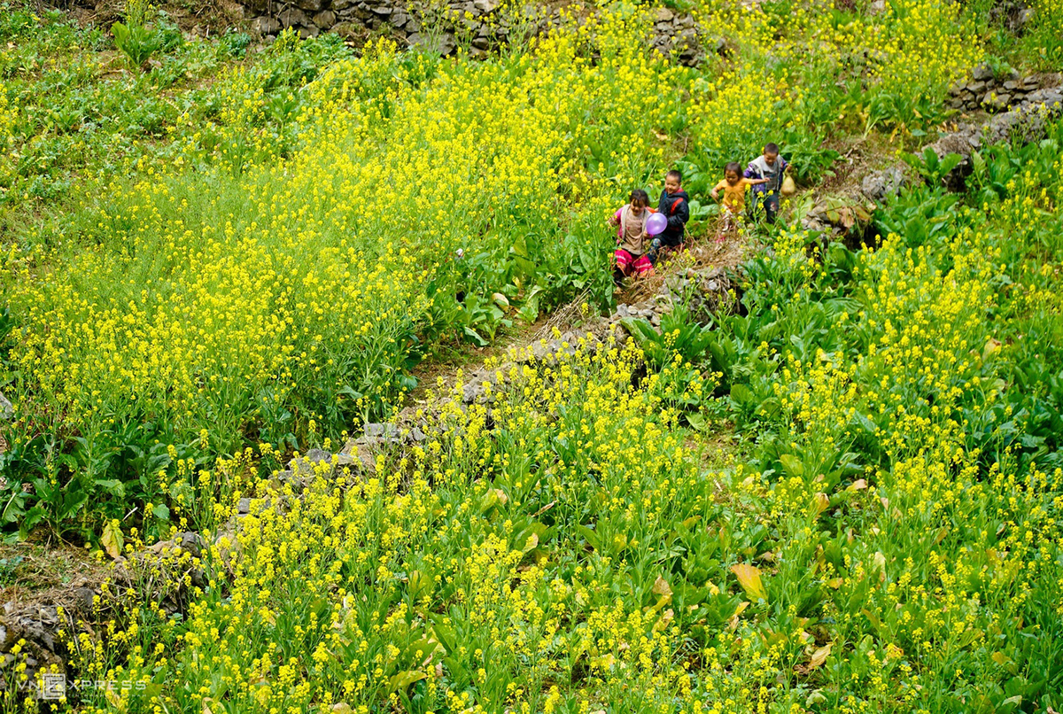 Hết năm cũ qua đi, miền đá xám đã bao ngày chìm trong giấc ngủ đông như bừng tỉnh bởi những sắc hoa làm mê đắm lòng người. Lũ trẻ đang chạy chơi đùa giữa luống cải vàng ở Mèo Vạc.