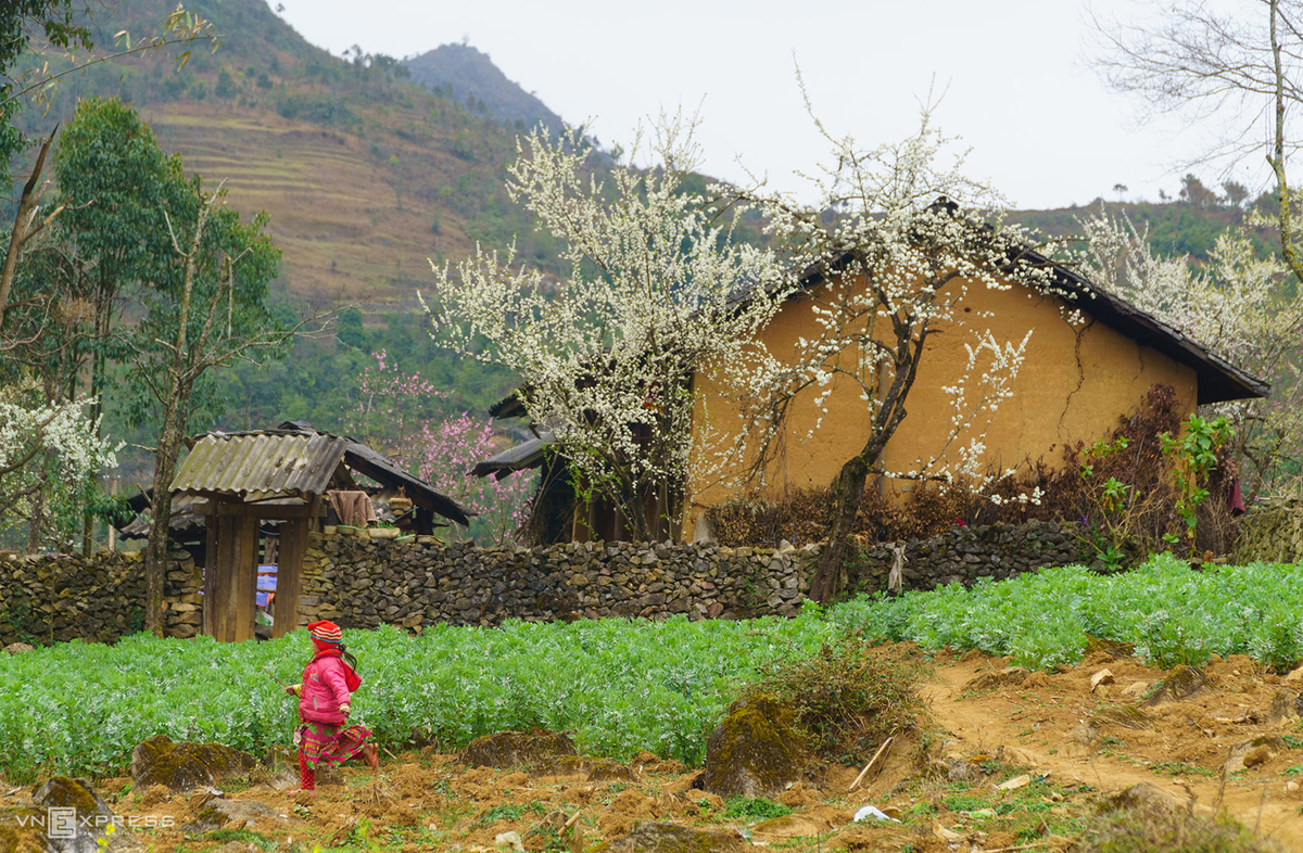 Sắc đào mận nở điểm thêm sinh tinh khôi cho nếp nhà Mèo Vạc. Từ thị trấn Mèo Vạc đến dọc đường thôn, bản hay các nếp nhà của đồng bào Mông đều được người dân trồng đào, mận, tô điểm cho ngôi nhà, cho tuyến đường.